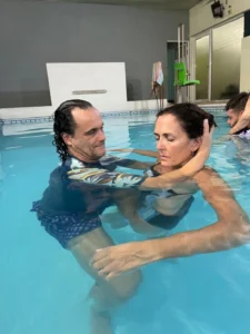 A partir del año 2005 se empezó a especializar en Terapias Acuáticas. En el año 2011 se formó como Instructora de Watsu® por WABA (Worldwide Aquatic Bodywork Association). Actualmente enseña los niveles 1, 2 y 3 además de Woga® y otras modalidades de Terapia Acuática.